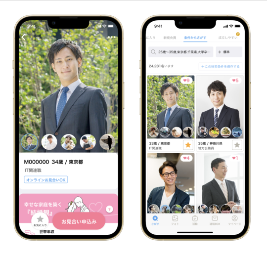 IBJが提供する信頼性の高いシステムと、最新のAIマッチング、お相手検索アプリで、24時間365日いつでもどこでも理想のお相手を探すことができます。日々お仕事が忙しい方、外出や移動が多い方でも、スマートフォンで操作が可能。移動中や外出先の隙間時間を使ってお見合い申し込みも可能です。カウンセラーへの連絡、個別相談もアプリを使って操作ができます。